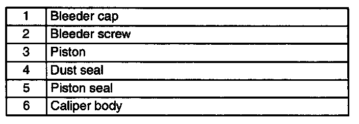 CALIPER (FRONT) DISASSEMBLY/ASSEMBLY1. Disassemble in the order indicated in the table.