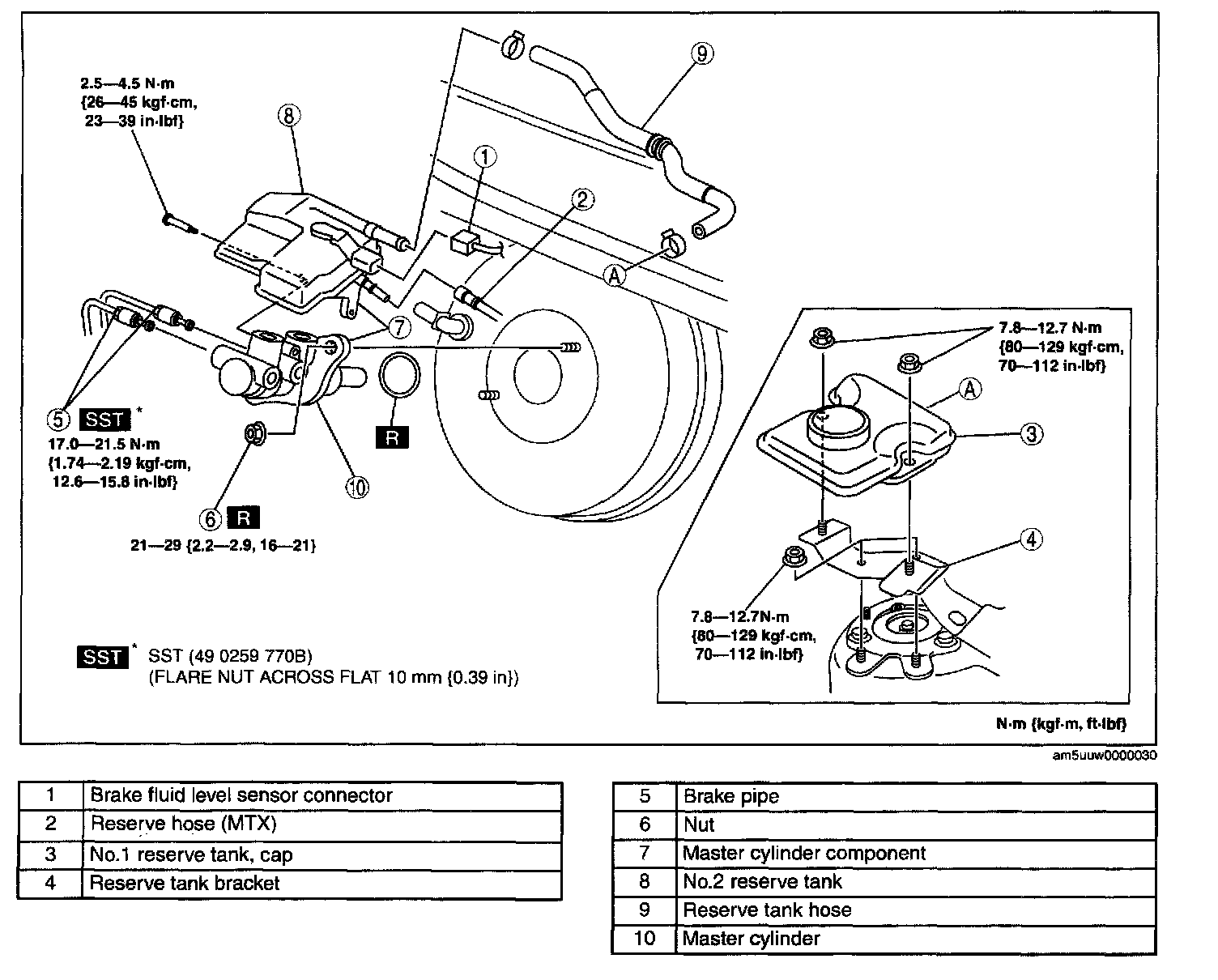 4. After installation, add brake fluid, bleed the air, and inspect for fluid leakage.