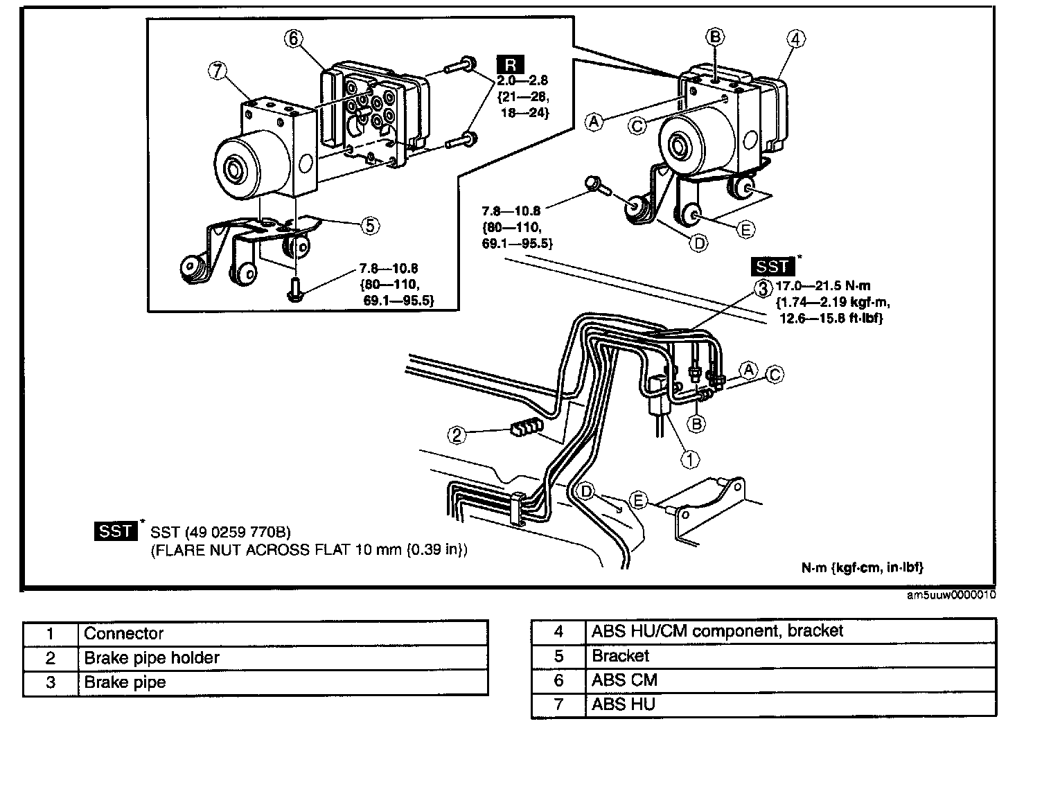 ^ When replacing the ABS HU/CM, the configuration procedure must be done before removing the ABS HU/CM. If the configuration is not completed before removing the ABS HU/CM, ABS will not work properly after installation of the ABS HU/CM.