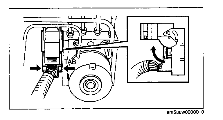 1. Pull the connector cover up in the direction of the arrow while pressing the tab of the connector cover.