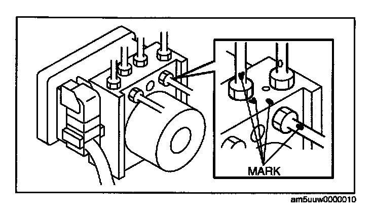 1. Place an alignment mark on the brake pipe and ABS HU/CM