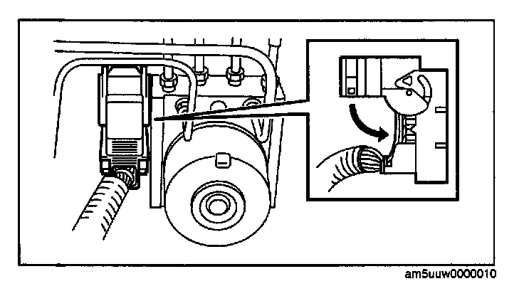 1. As shown in the figure, move the bracket in the direction of the arrow and remove the ABS HU/CM component and bracket from the body.