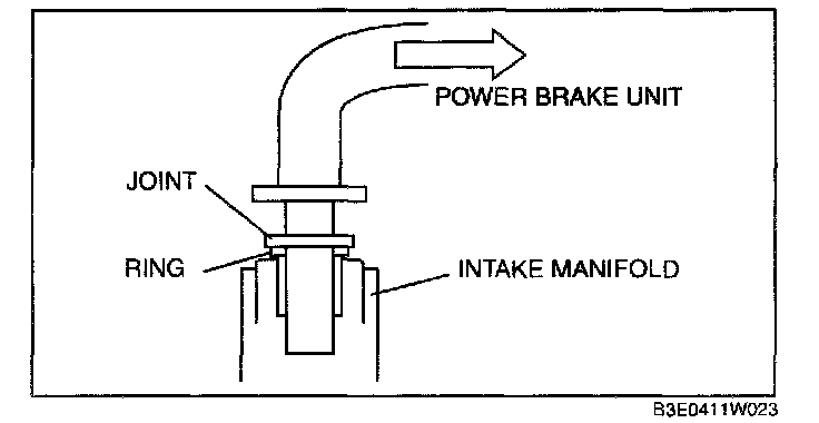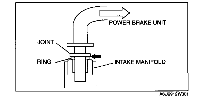 5. Verify that the vacuum hose is inserted so that the joint contacts the intake manifold ring.