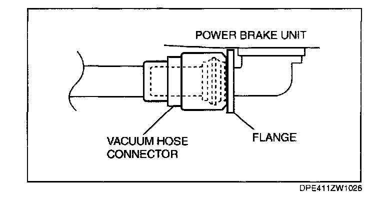 6. Verify that the vacuum hose is inserted so that the connector contacts the power brake unit flange.