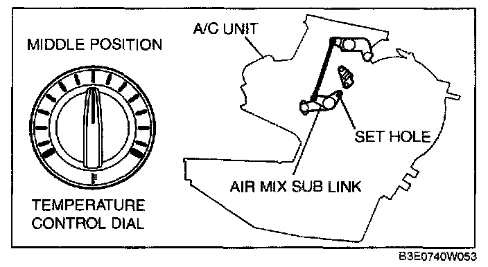 CAUTION: If the air mix wire is set without first fixing the air mix link position, it is possible that the air mix door cannot be switched normally.