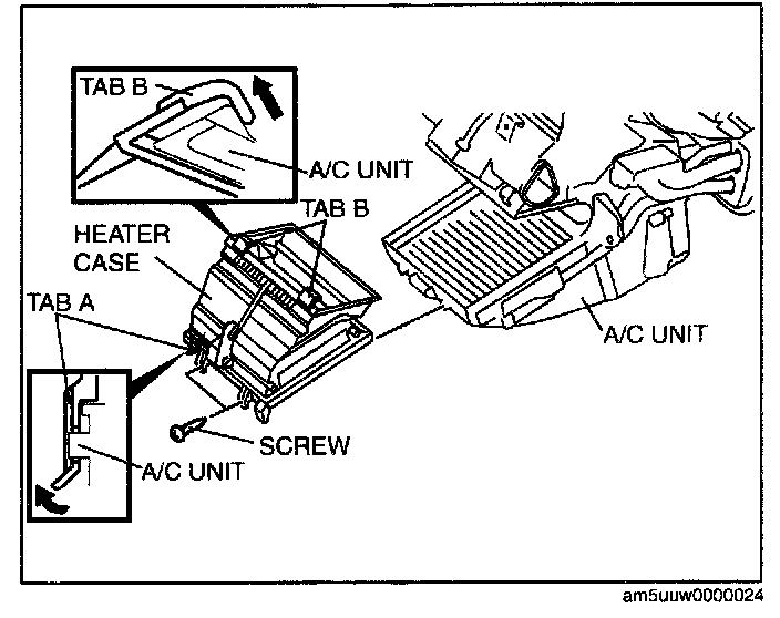14. Remove the nuts and bolts for installing the A/C unit to the dashboard.