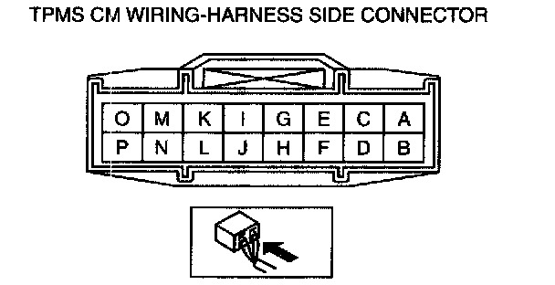 Note: When inspecting for continuity, turn the ignition switch off and inspect with the TPMS control module connector disconnected.