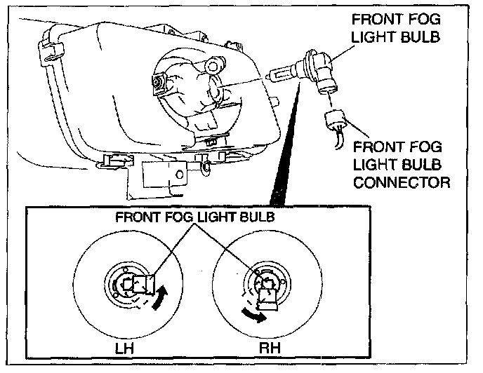 5. 9. Remove the front fog light bulb by turning it in the direction shown by the arrow.
