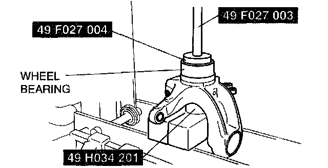 WHEEL HUB, STEERING KNUCKLE REMOVAL/INSTALLATIONCaution: Performing the following procedures without first removing the ABS wheel-speed sensor may possibly cause an open circuit in the wiring harness If it Is pulled by mistake. Before performing the following procedures, disconnect the ABS wheel-speed sensor connector (axle side) and fix the wiring harness to an appropriate place where it will not be pulled by mistake while servicing the vehicle.