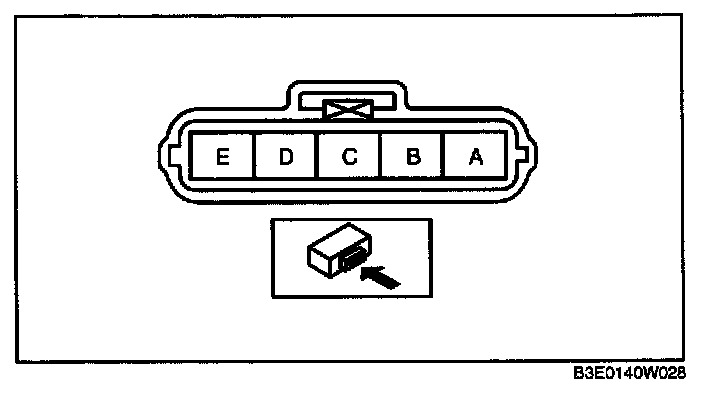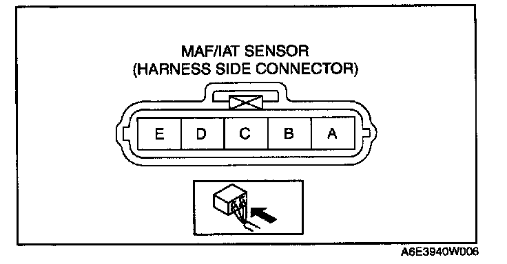 2. Verify that the resistance between MAF sensor terminals D and E is within the specification.
