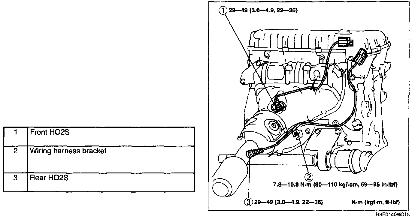 HEATED OXYGEN SENSOR (HO2S) REMOVAL/INSTALLATION[L3]WARNING: A hot engine and exhaust system can cause severe burns. Turn off the engine and wait until they are cool before removing the exhaust system.