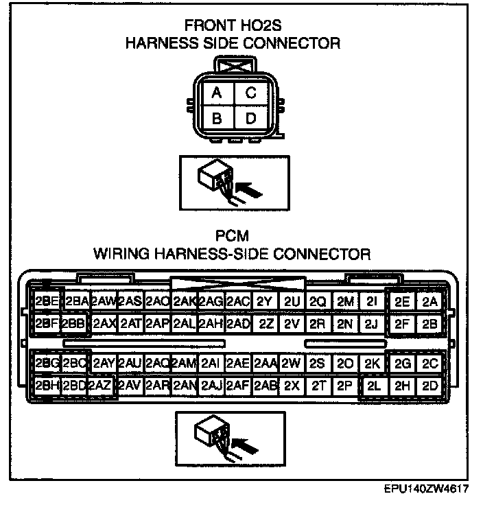 FRONT HEATED OXYGEN SENSOR (HO2S) INSPECTION[L3]NOTE: Before performing the following inspection, make sure to follow the procedure as indicated in the troubleshooting flowchart.