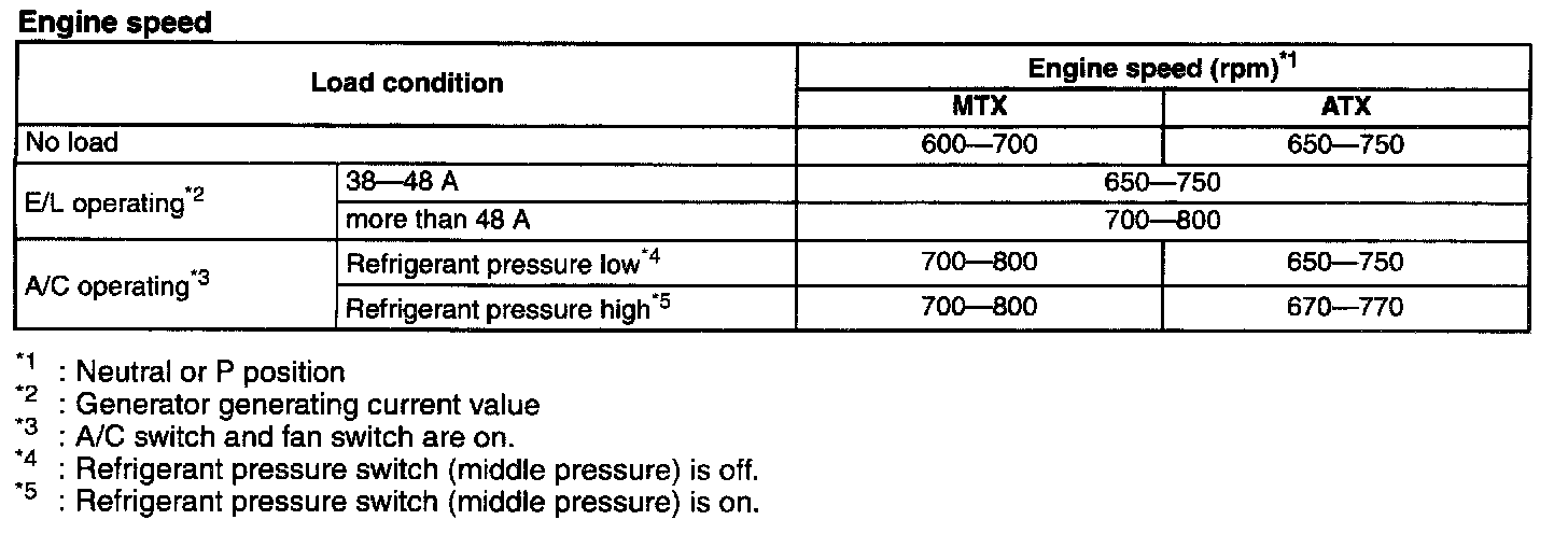 NOTE: Excludes temporary idle speed drop just after the loads are turned on.