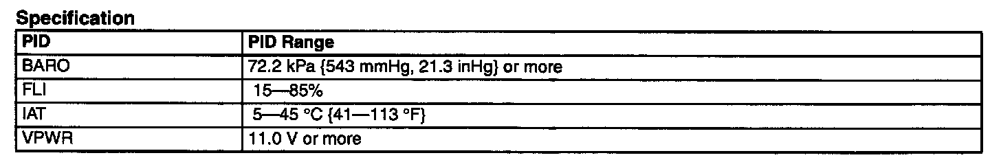 - To successfully perform this procedure, all PIDs must be within the following specifications before proceeding to the next step.