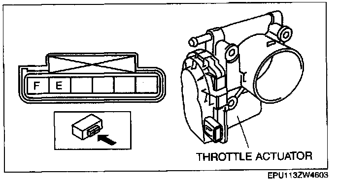 - Throttle actuator terminal E and power supply