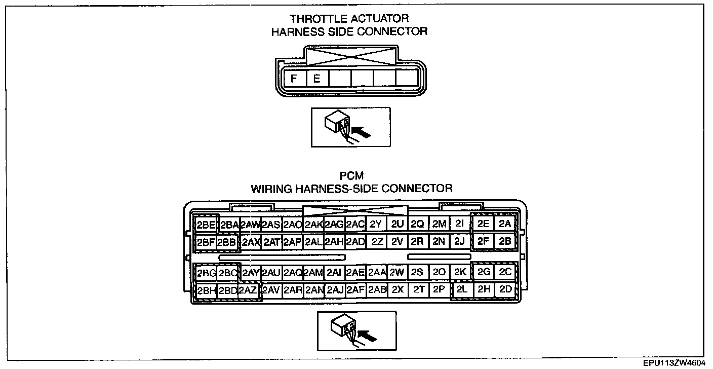 - Throttle actuator terminal F and PCM terminal 2A