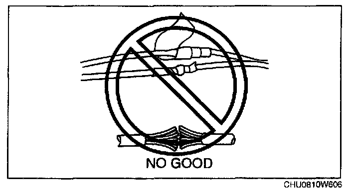 - Incorrectly repairing an air bag wiring harness can accidentally operate (deploy) the air bag module and pre-tensioner seat belts. If a problem is found in the air bag wiring harness, always replace the wiring harness with a new one.