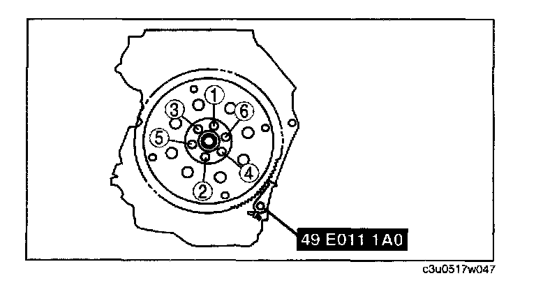 Tighten the drive plate mounting bolts in two or three steps in the order as shown in the figure.