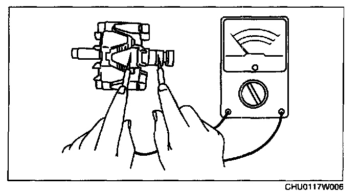2. Verify that there is no continuity between the slip ring and core using a tester.