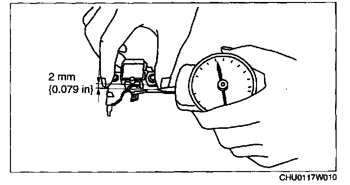 2. Read the spring pressure gauge at the brush tip projection of 2 mm (0.079 in).