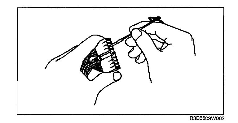 2. Insert the male terminal to the female terminal and inspect the female terminal for looseness.