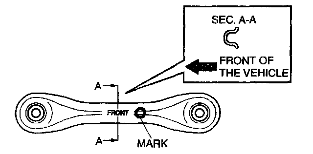 1. Install the rear lateral link with "FRONT" facing the vehicle front and the painted mark facing the inside of the vehicle.
