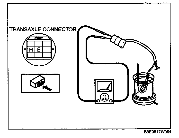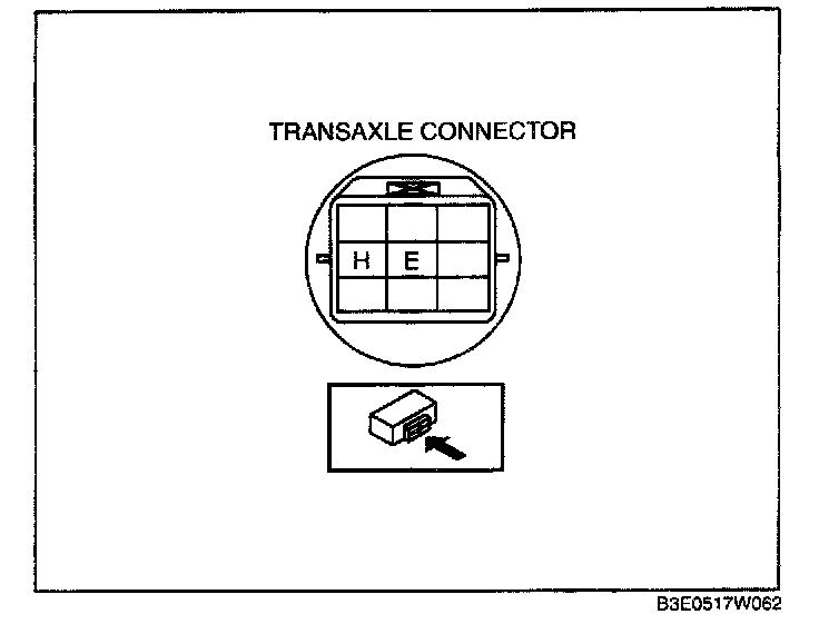 5. Measure the resistance between the transaxle connector terminals E and H.