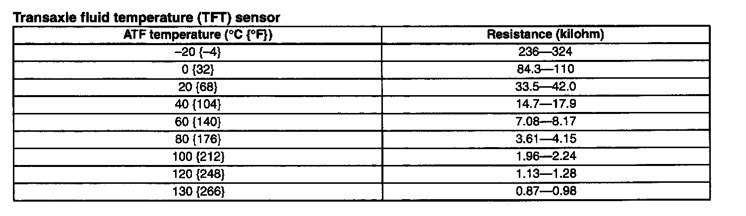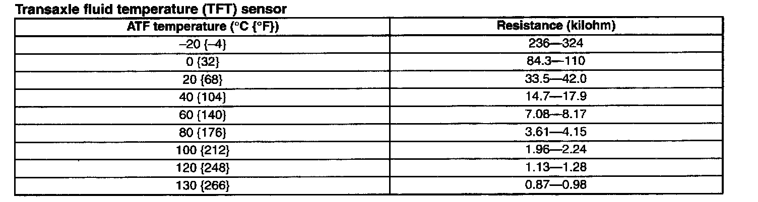 TRANSAXLE FLUID TEMPERATURE (TFT) SENSOR INSPECTION (FN4A-EL)On-Vehicle Inspection