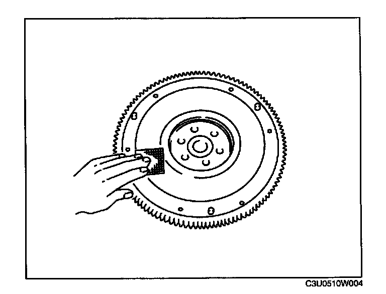 2. Inspect the surface that contacts the clutch disc for scratches, nicks, and discoloration.