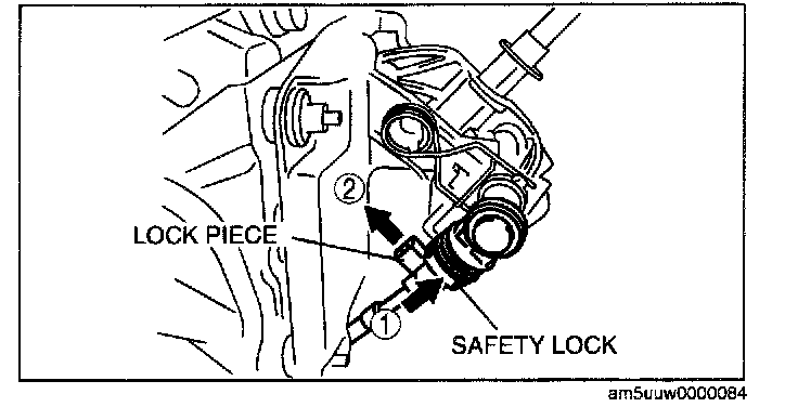2. Push the safety lock, then unlock the lock piece of the select cable in the order shown in the figure.