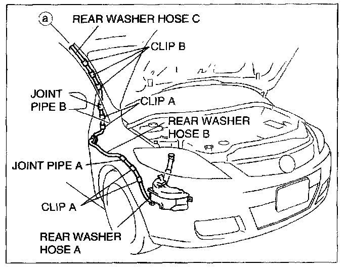NOTE: After installing the rear washer hose, reinforce the urethane that was cut when removing.