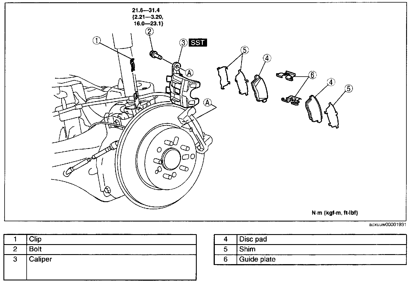 DISC PAD (REAR) REPLACEMENT1. Remove in the order indicated in the table.