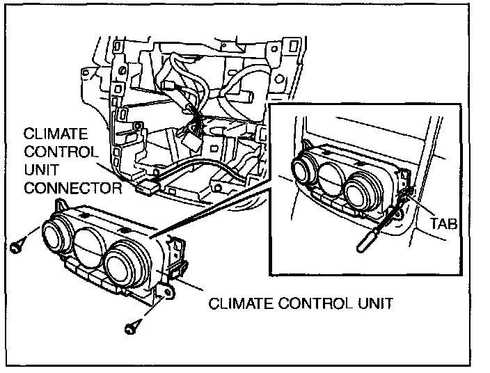5. Disconnect the climate control unit connectors and remove the climate control unit.