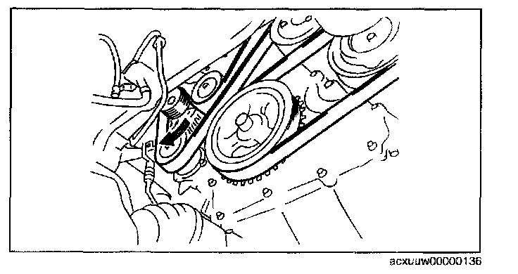 2. Rotate the drive belt auto tensioner in the direction shown in the figure and remove the drive belt.