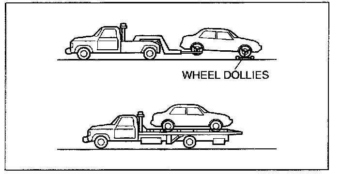 - A towed 2WD vehicle should have its front wheels off the ground. If excessive damage or other conditions prevent this, use wheel dollies.