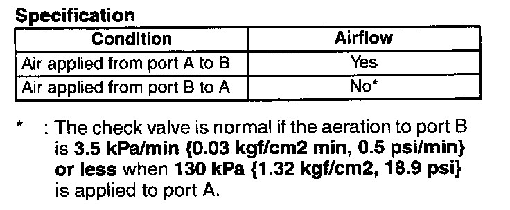 - If not as specified, replace the check valve.