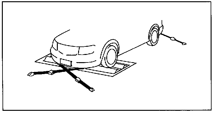- Install the tension bar (chain wire) to the tie down hook and secure the vehicle to prevent it from rolling and running off.