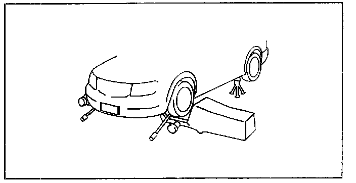 2. Support the wheels (front or rear) on the side to be measured (near the wheels) using a wheel balancer sensor stand.