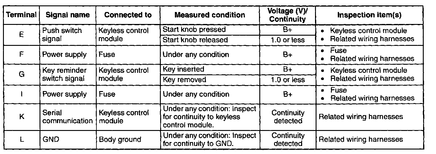 STEERING LOCK UNIT INSPECTION1. Measure the voltage or inspect for continuity according to the Terminal Voltage Table (Reference).