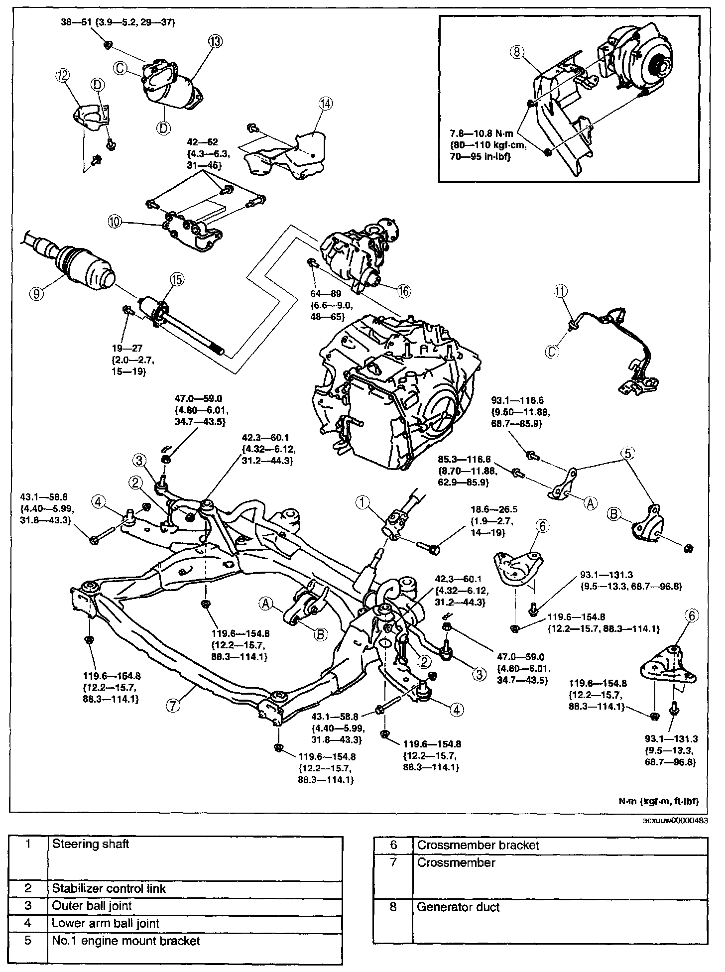 Bolt A, B: 93.1 - 116.6 Nm (9.50 - 11.88 kgf-m, 68.7 - 85.9 ft-lbf)