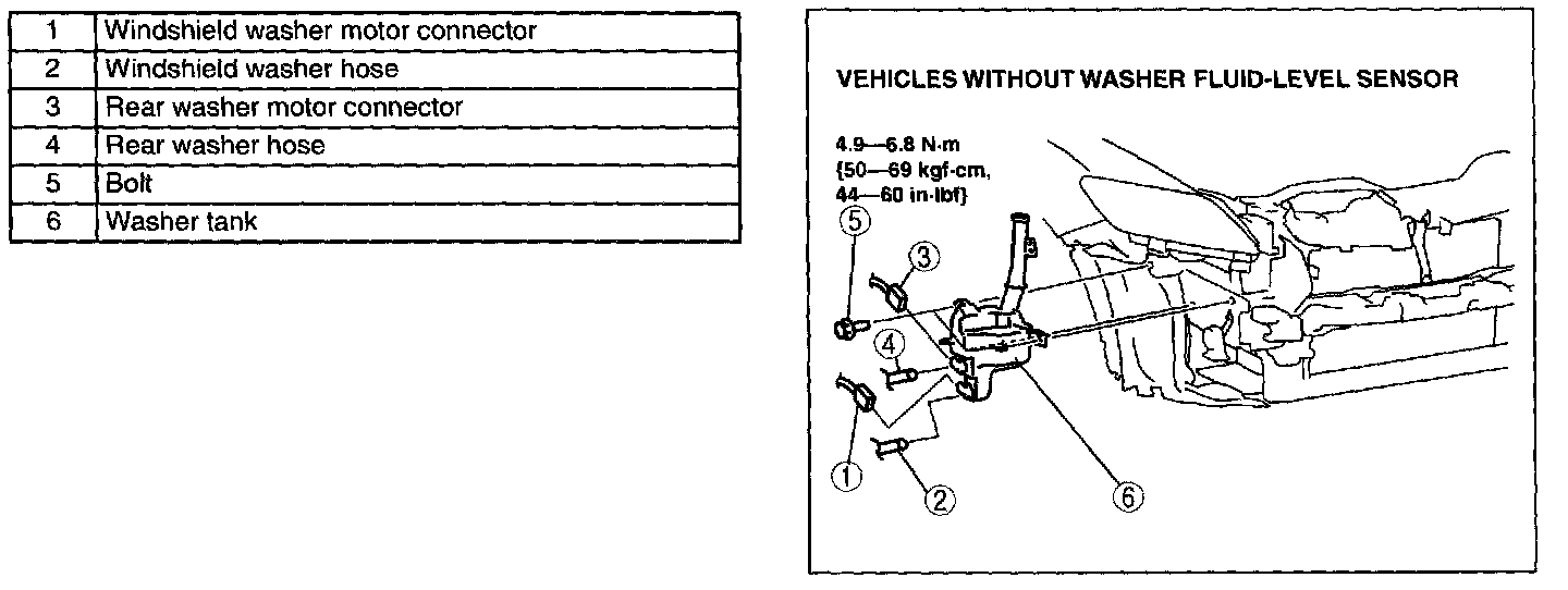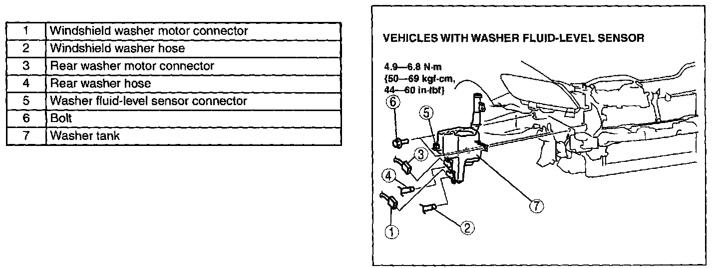 WASHER TANK REMOVAL/INSTALLATION1. Disconnect the negative battery cable.
