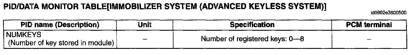 PID/DATA Monitor Table[Immobilizer System (Advanced Keyless System)]: