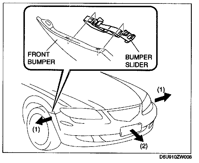 1. Pull the front bumper ends (wheel arch) outward to disengage from the bumper slider.