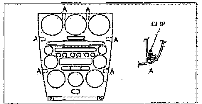 1. Pull the center panel unit toward you, then disengage clips A from the dashboard, and remove the center panel unit.