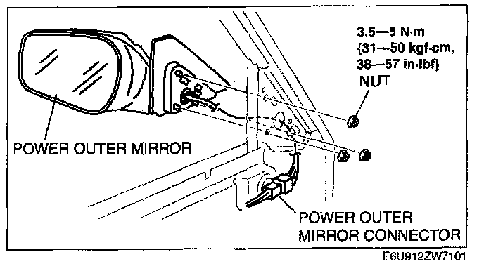 POWER OUTER MIRROR REMOVAL/INSTALLATION1. Disconnect the negative battery cable.