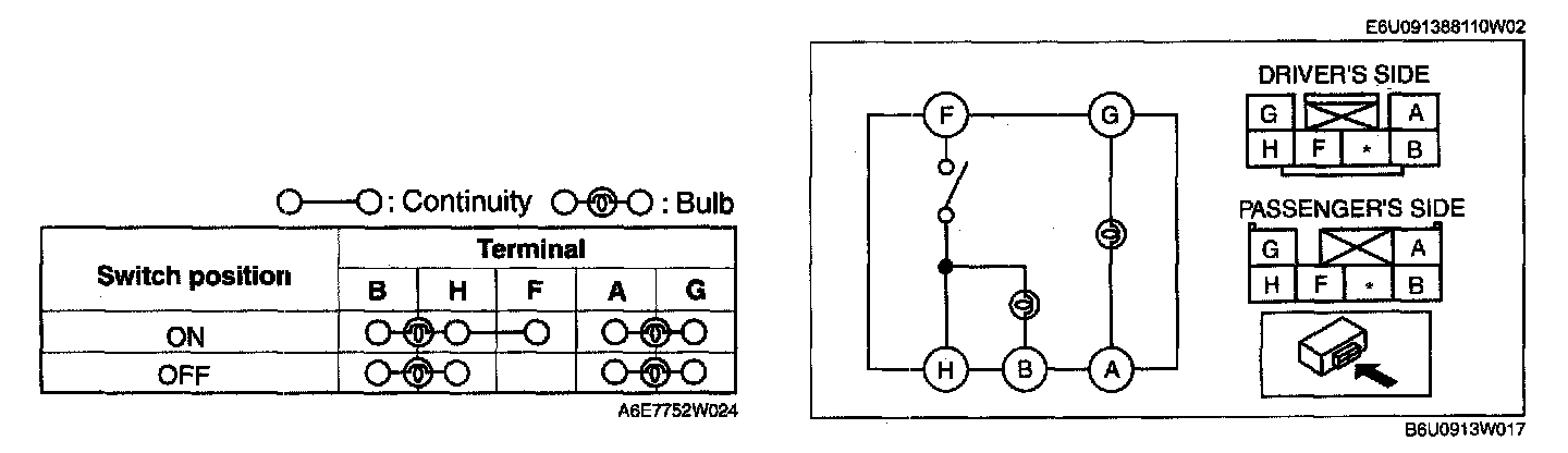 Inspect for continuity between the seat warmer switch terminals using an ohmmeter.