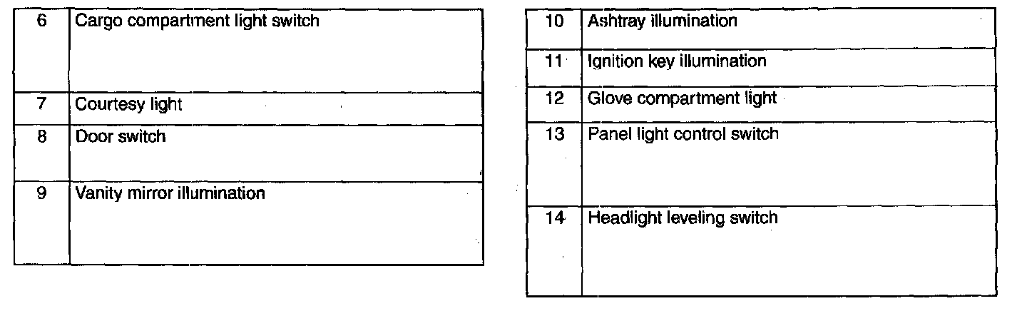 Interior Lighting System Location Index: