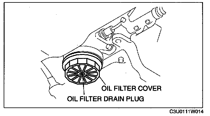 4. Remove the oil filter drain plug, and drain the engine oil.