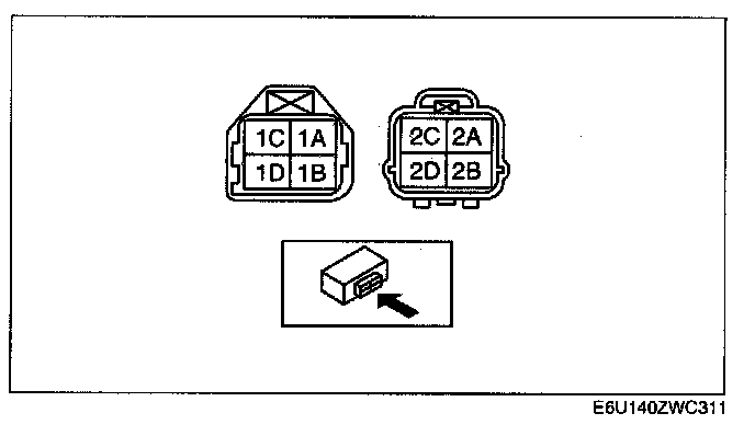 2. Measure the resistance between front HO2S terminals 2B and 2D.