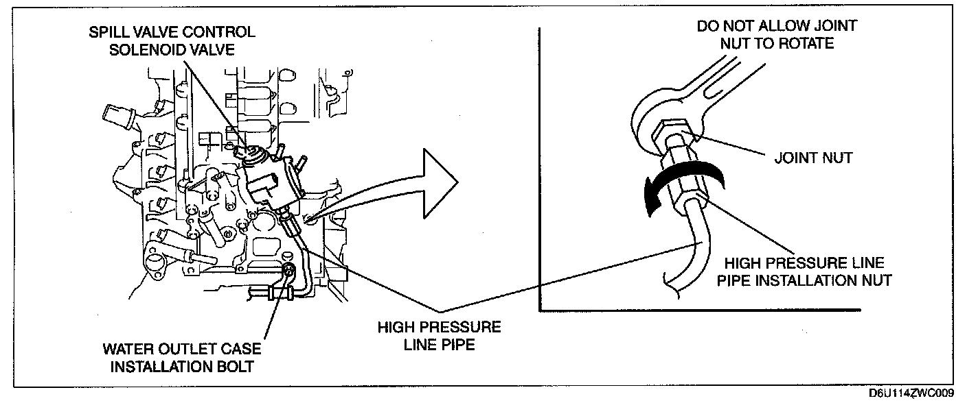 2. Tighten the high pressure line pipe installation nut.